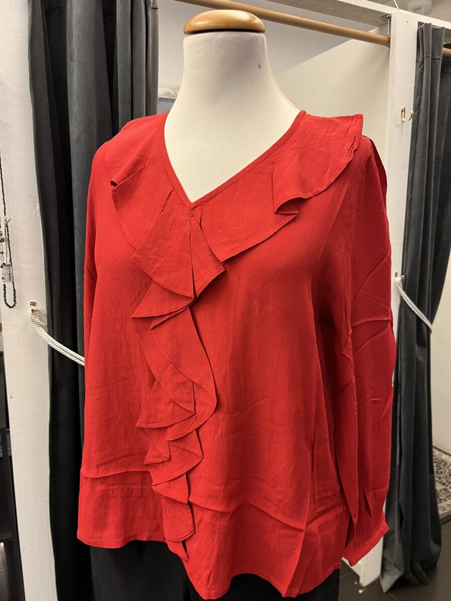 Fin topp från Masai, v-ringad med volang, som går ända ner. Lång ärm med liten resår nertill. Finns i röd 100% viskos