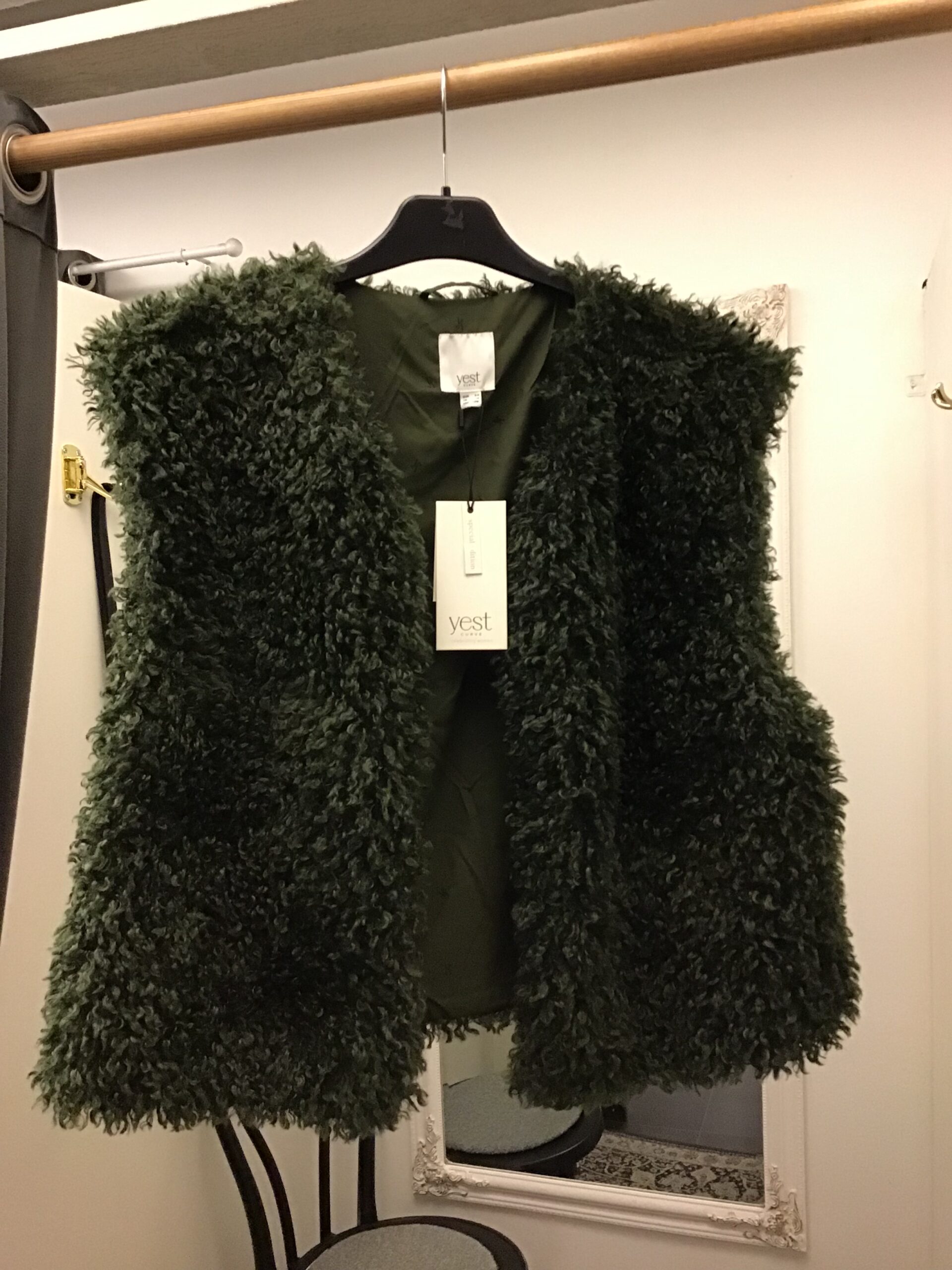 Härlig lite kortare väst i fuskpäls, två hyskor fram, färg grön 100% polyester